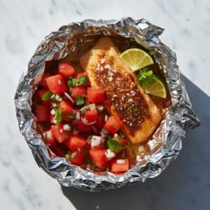 Cooking up this Foil-Packet Spice-Rubbed Fish with Watermelon Salsa was such a delightful experience! From the fresh flavors to the ease of preparation, it’s hard not to love this recipe. We conquered the grill/oven like pros and ended up with a meal that felt fancy without all the fuss. I definitely felt like a kitchen superstar! Give it a try, and you might just find a new favorite family dish this summer. Remember, cooking should be fun, so don’t be afraid to tweak and create your own version!