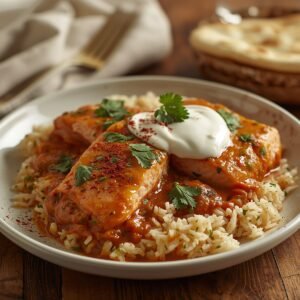 • Serve your Salmon Tikka Masala over rice or with warm naan, and don’t forget to sprinkle some fresh cilantro on top for that burst of freshness!